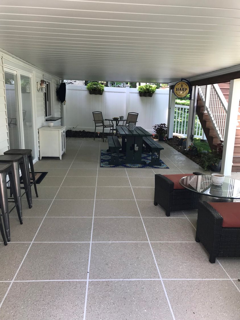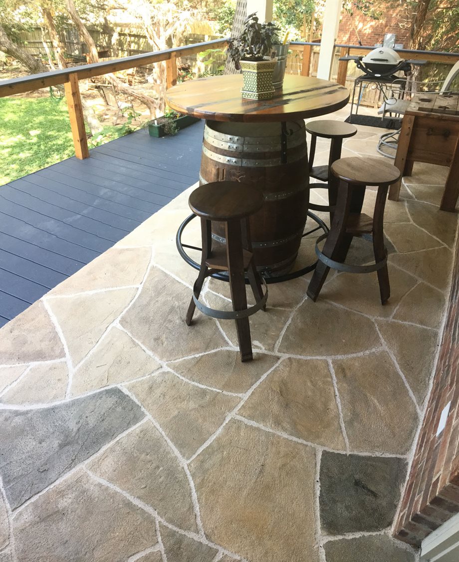 If there is an existing surface to work with, a stampable overlay can be applied over the surface, so the existing surface does not need to be ripped out. After the overlay is troweled or squeegeed over the surface, it can be stamped or scored to create a design or the look of flagstone, tile, custom slate, and more. You can customize your look with a variety of textures and colors.