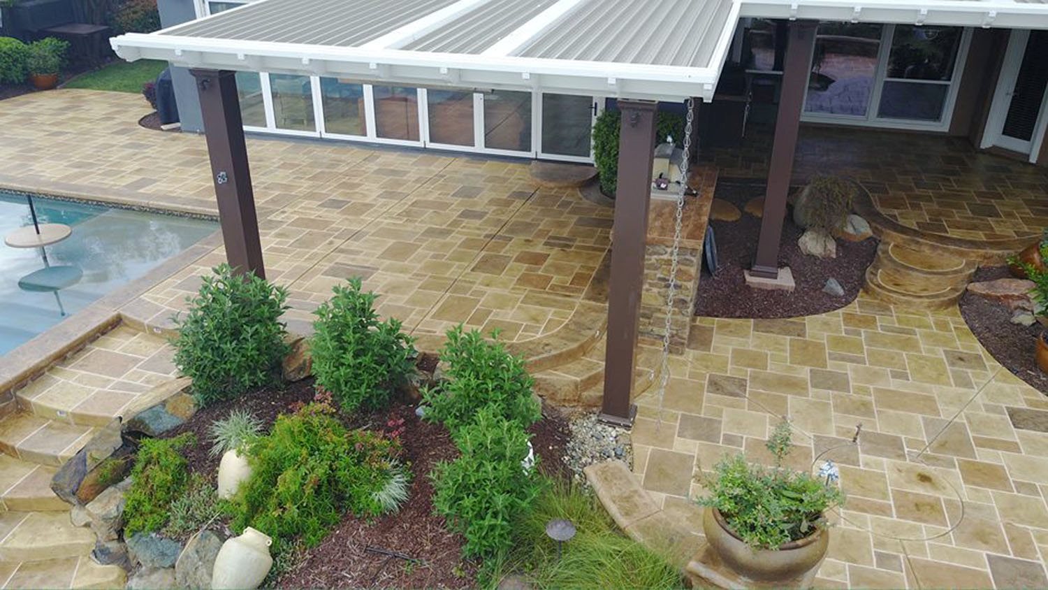 If you install natural stone pavers, the cost of materials and labor will be around the same cost or more expensive than stamped concrete.
